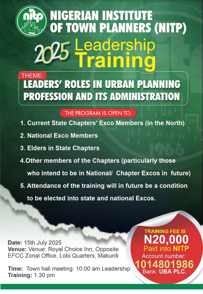 Stay informed with the latest developments from the Nigerian Institute of Town Planners (NITP)! We regularly share updates on policy advocacy, new research findings, professional training opportunities, and community engagement initiatives aimed at shaping sustainable and resilient urban environments across Nigeria.